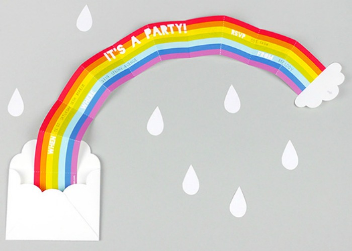 Es una invitación de cumpleaños muy sencilla de hacer y seguro que más de uno querrá colgar en su habitación el arcoiris para darle un toque de color ¡Es realmente genial!