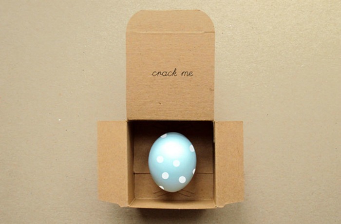 Solo necesitamos huevos (tantos como invitados haya), acuarelas con las que decorarlos y papelitos en los que escribir nuestro mensaje. ¡Ah! Y cajitas cuadradas para asegurarnos de que el huevo no se rompe que también podemos decorar como si fuéramos a enviar por correo.